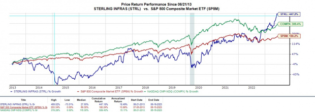 In fact, the E-infrastructure, building and transportation solutions company has now seen its stock soar 59% this year to largely outperform the broader indexes. More astonishing, Sterling stock is now up +447% over the last decade to vastly outperform the S&P 500’s +180% and even the Nasdaq’s +309%.