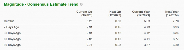 The Zacks Consensus for Royal Caribbean’s FY23 earnings has already soared 19% over the last week to estimates of $5.63 per share compared to $4.73 a share seven days ago. Fiscal 2024 EPS estimates have climbed 7% over the last week and are now expected at $7.70 a share compared to $6.93 per share a week ago.