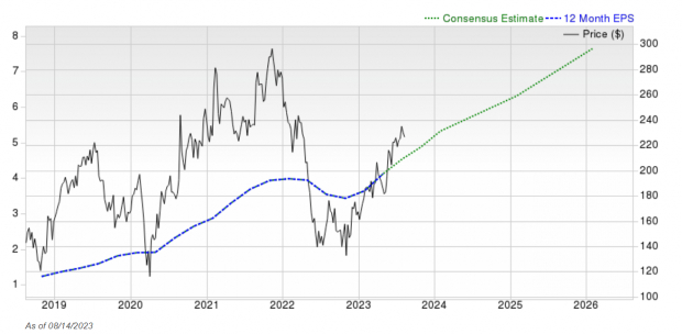 In addition, the company’s cloud-based business model is increasingly gaining traction. Strong emphasis integrating generative AI in Workday products and unique new AI-driven applications in development by the company looks to be a long-term tailwind.