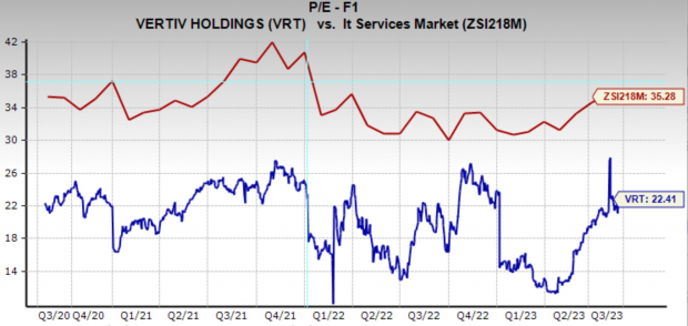 Even with such stunning sales and earnings growth, Vertiv trades at a very fair valuation. VRT is trading at a one year forward earnings multiple of 22.4x, which is below the industry average of 35.3x, and above its three-year median of 20.7x.