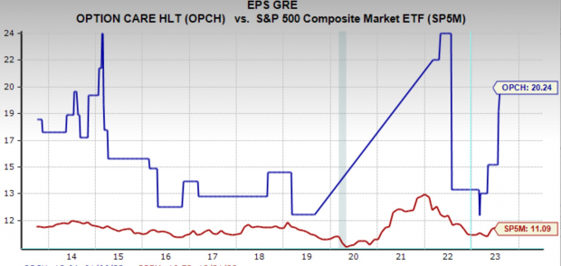 Option Care Health also has a Zacks Rank #1 (Strong Buy) rating, along with above market EPS growth estimates. EPS are forecast to grow 20.2% annually over the next 3-5 years. This estimate means it is growing its earnings at nearly twice the rate as the broad index.