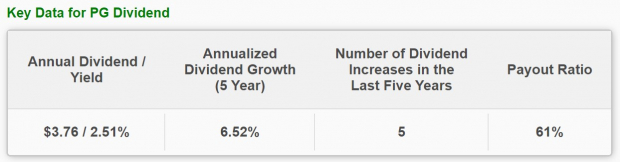 Pepsi (PEP) : One of the most popular consumer staples stocks on the dividend aristocrat list is Pepsi which has raised its dividend for 51 consecutive years classifying the company as a “dividend king” as well (50 consecutive years or more).