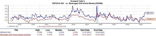In addition to Pepsi’s sound growth, its current 3.12% annual dividend yield tops the Zacks Beverage-Soft Drinks Markets’ 2.63% average and is well above the S&P 500’s 1.50% average.