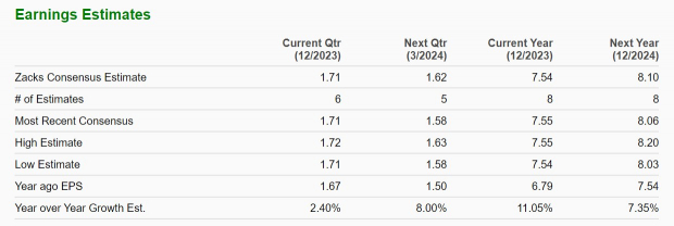 More intriguing, Pepsi’s stock currently sports a Zacks Rank #2 (Buy) with earnings estimates modestly higher over the last 30 days for both fiscal 2023 and FY24 after the beverage giant slightly surpassed its third-quarter top and bottom line expectations earlier in the month. Notably, Pepsi’s annual EPS is now forecasted to expand 11% in FY23 and rise another 7% next year to $8.10 per share.